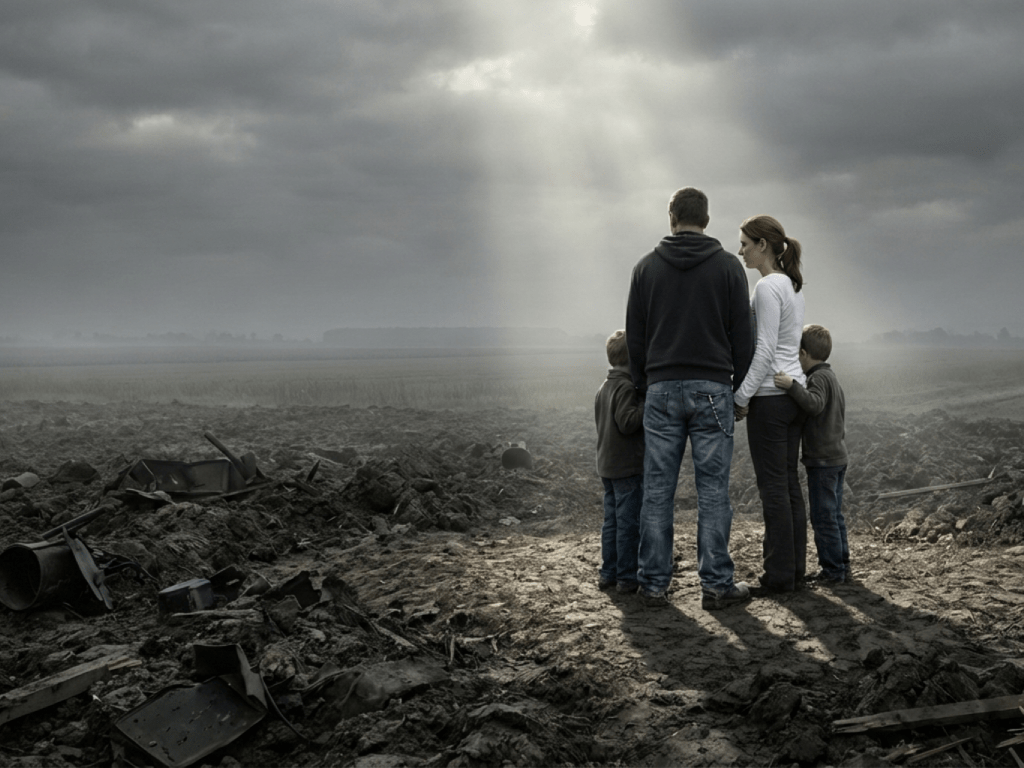 My sons close by, our hope restored.